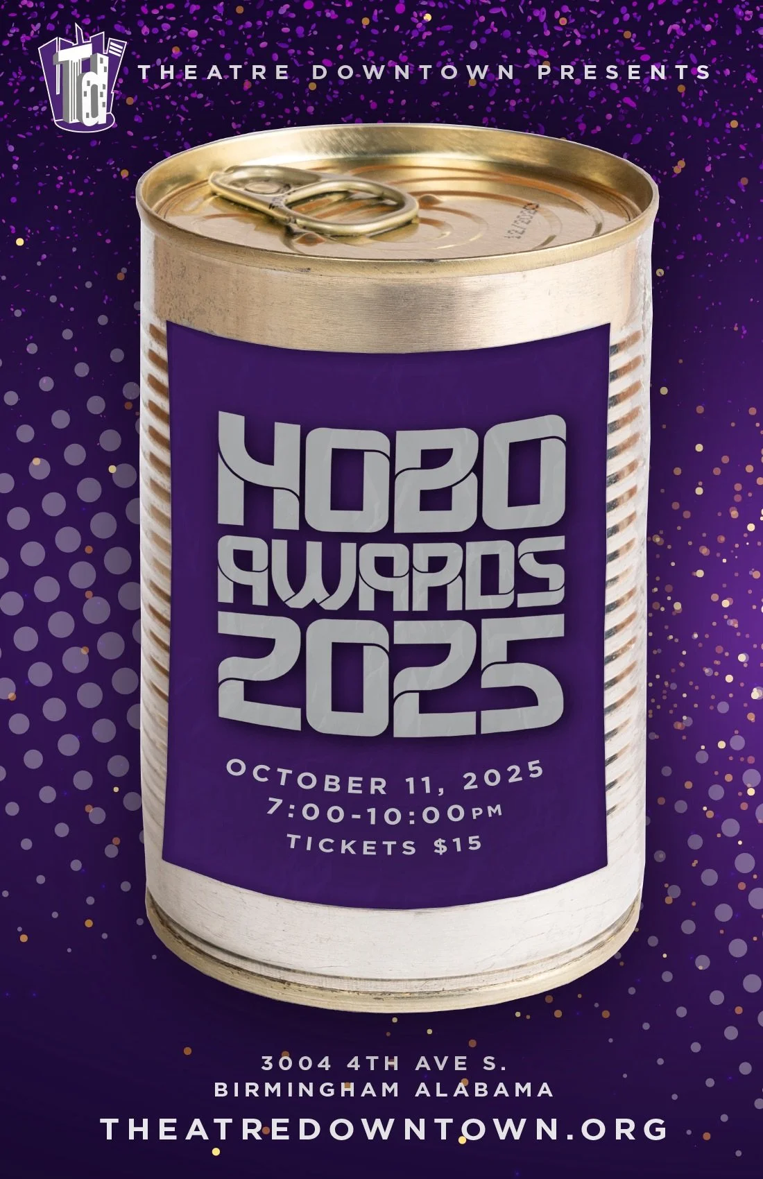 For the first time since 2019, we're rolling out the red carpet (okay, it’s more of a thrift-store rug, but still classy), and Birmingham’s finest thespians are ready to strut, perform or maybe ugly-cry when they win. Think Tony Awards… but with more glitter, bean cans, and way-less running time. Every award is forged from our super-secret bean can recipe painted gold, silver, or doused in enough glitter to blind you. They’re shiny! They’re coveted! They’re slightly dangerous!